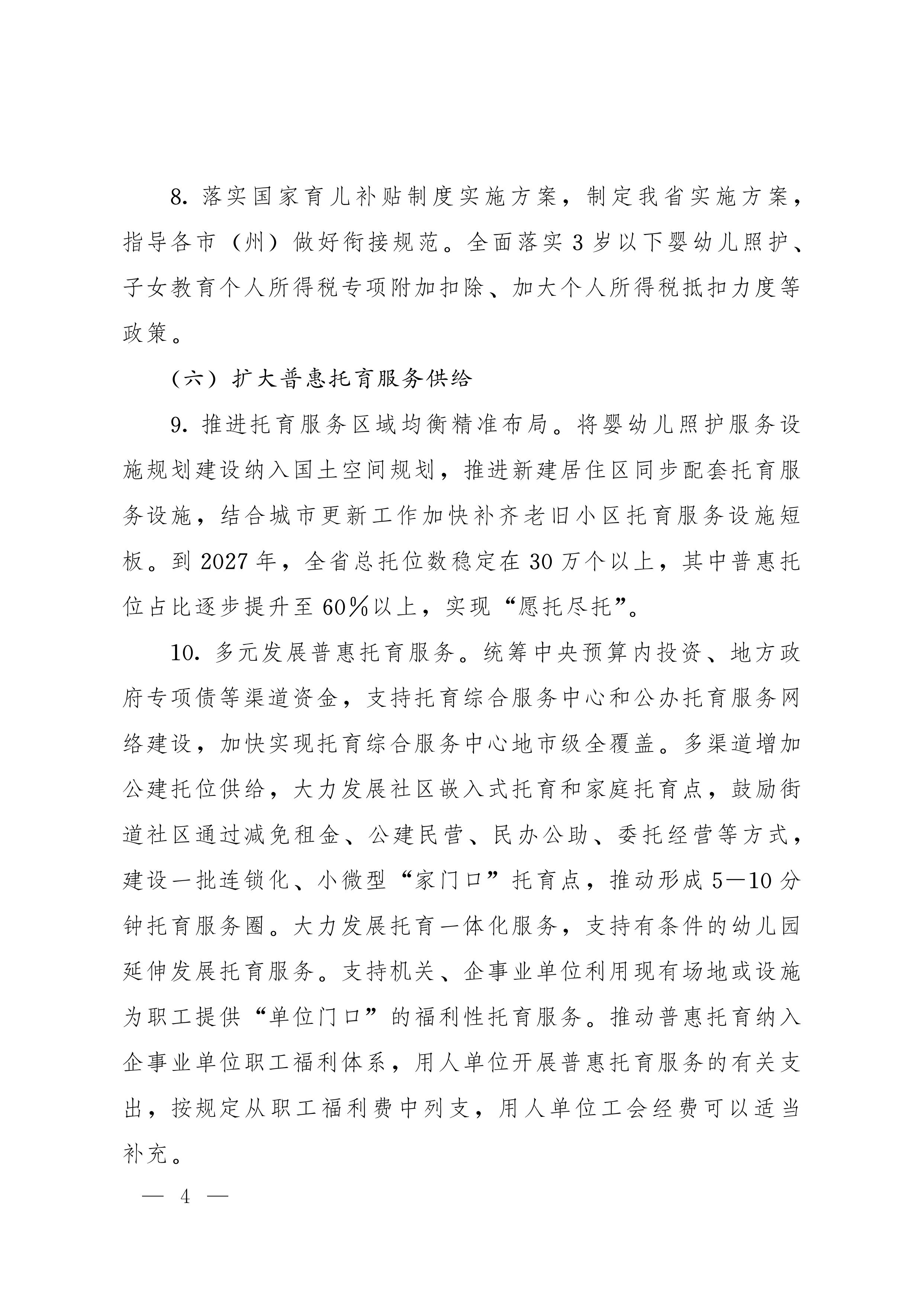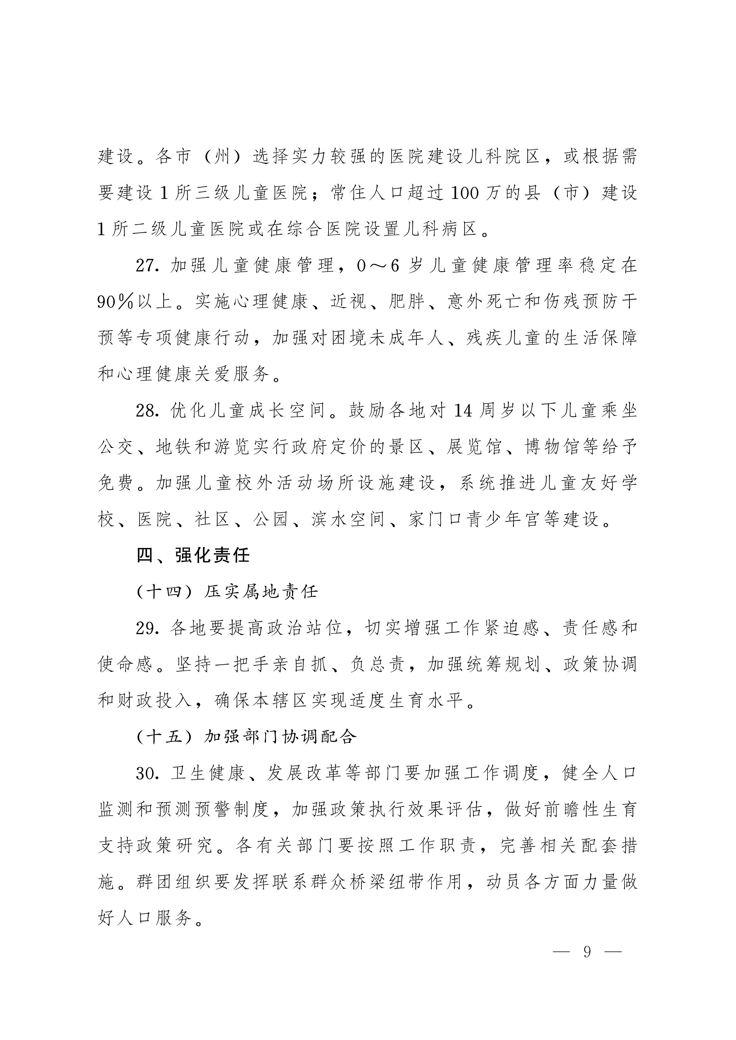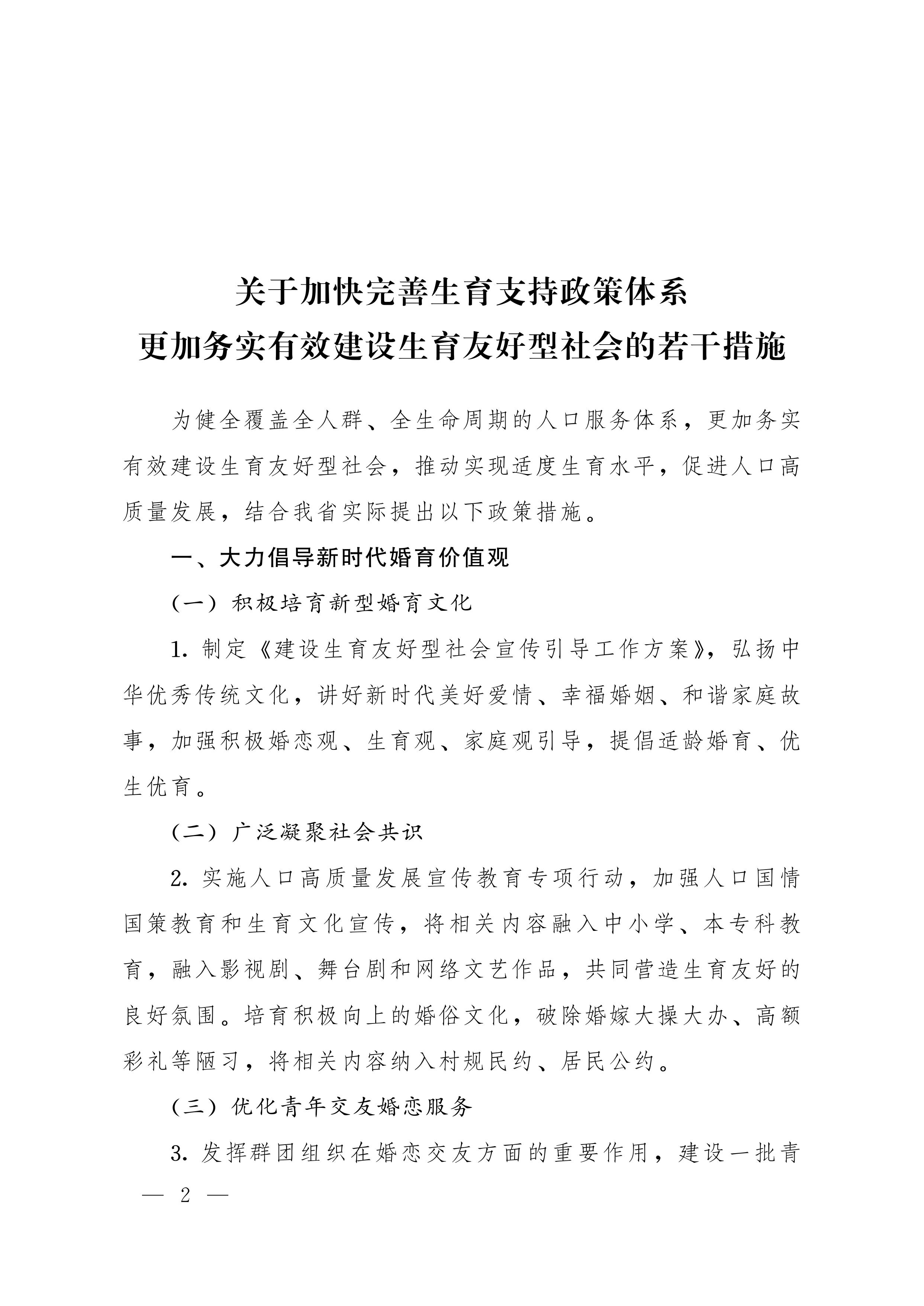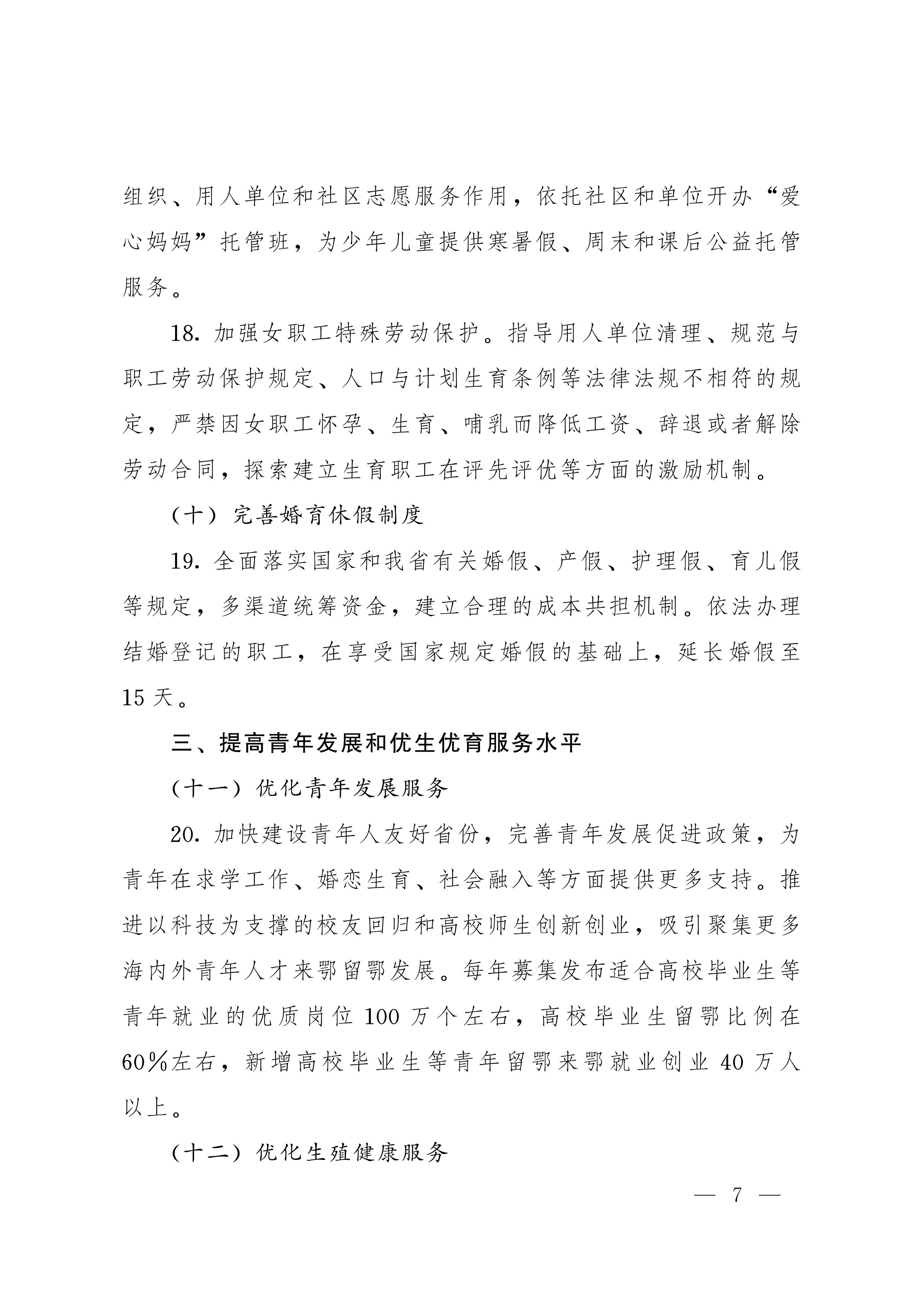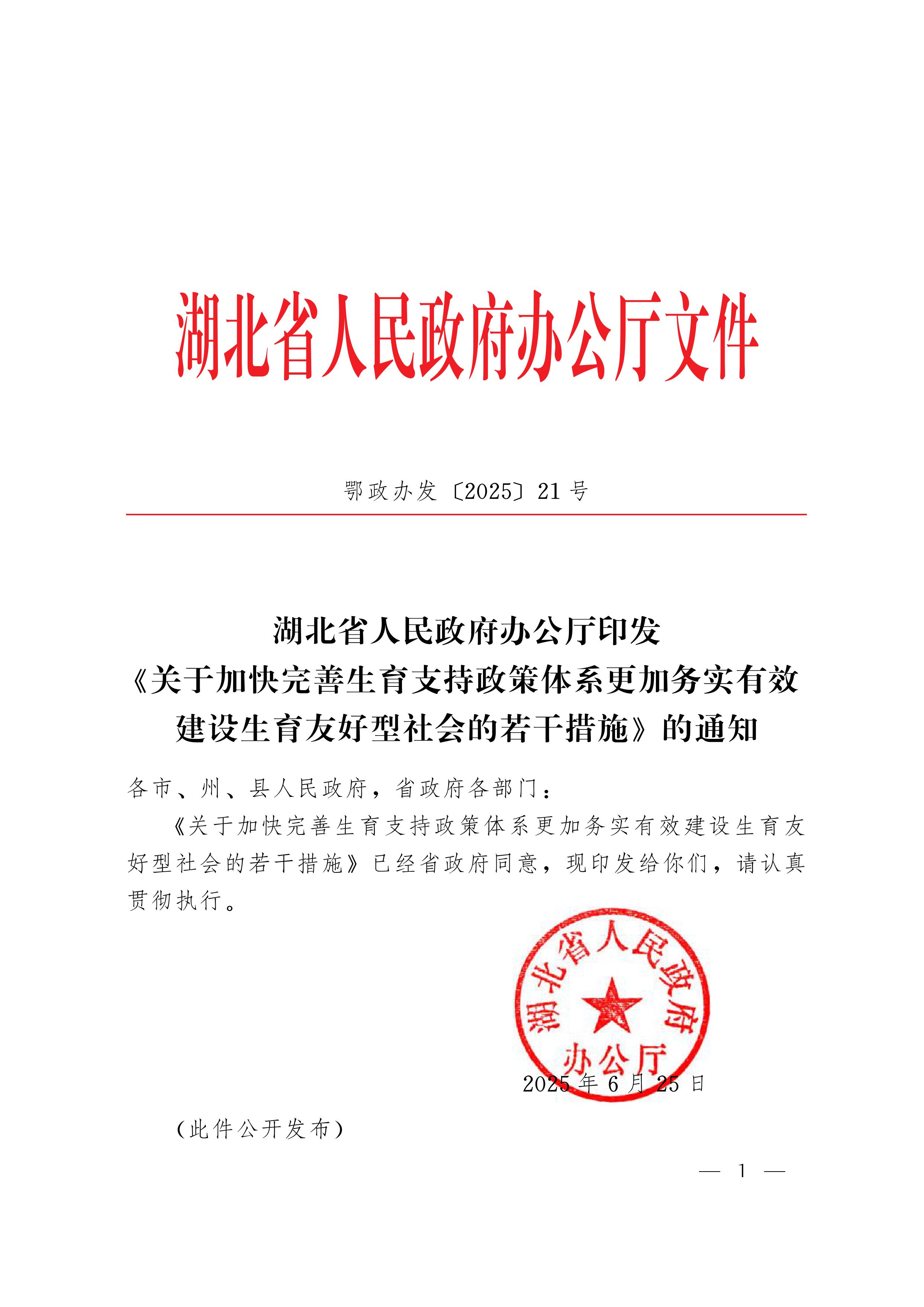 湖北省人民政府办公厅印发《关于加快完善生育支持政策体系更加务实有效建设生育友好型社会的若干措施》的通知