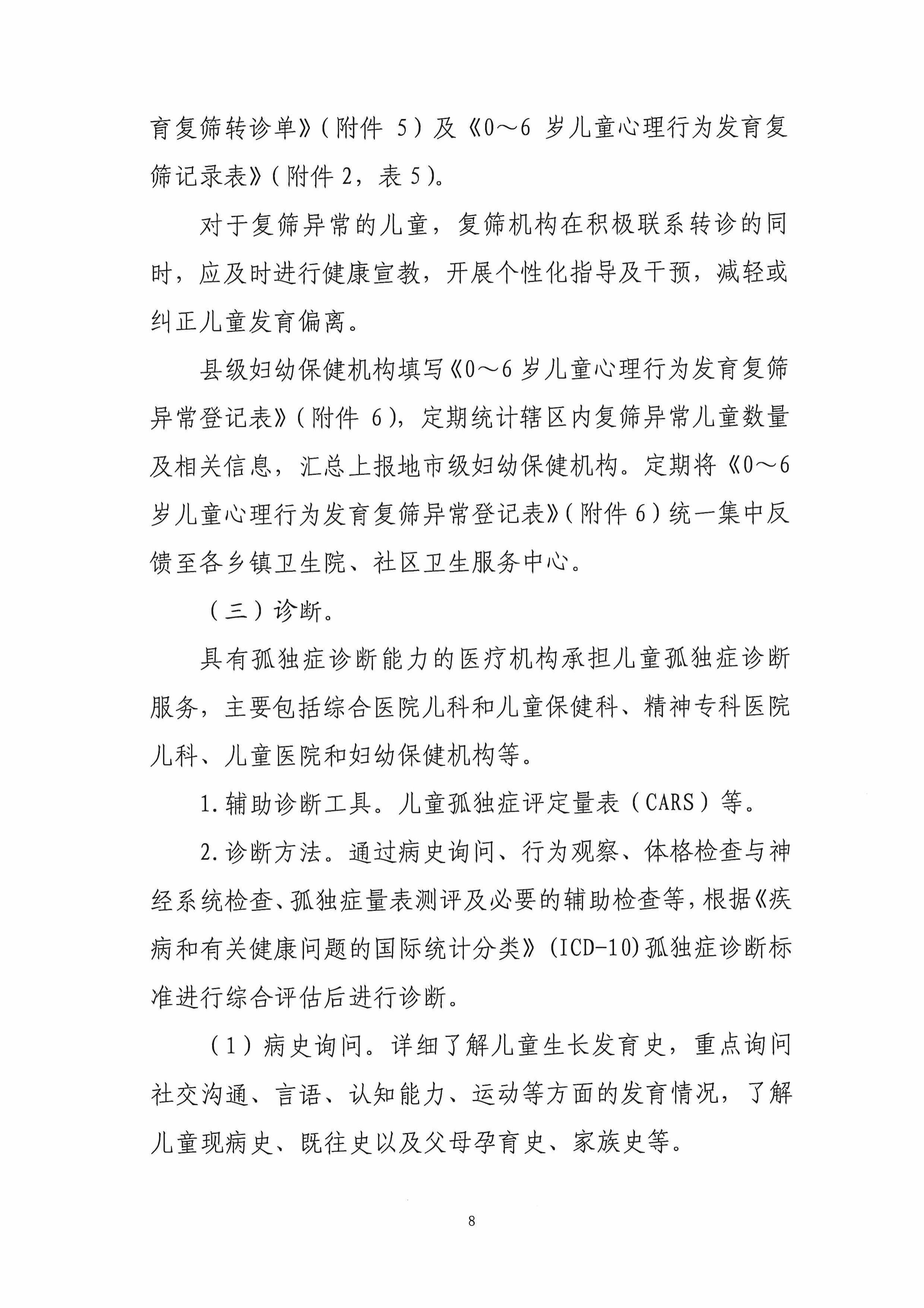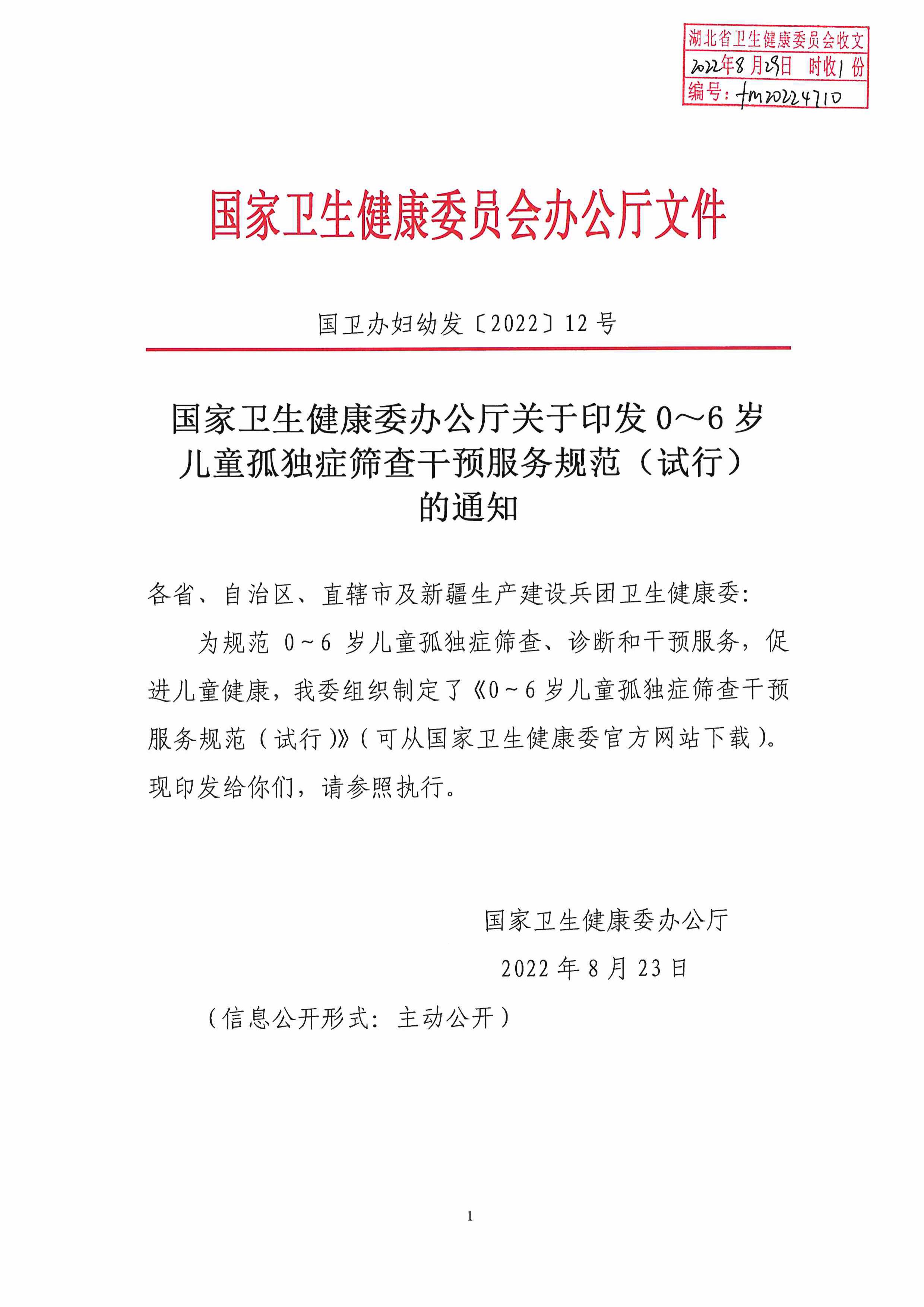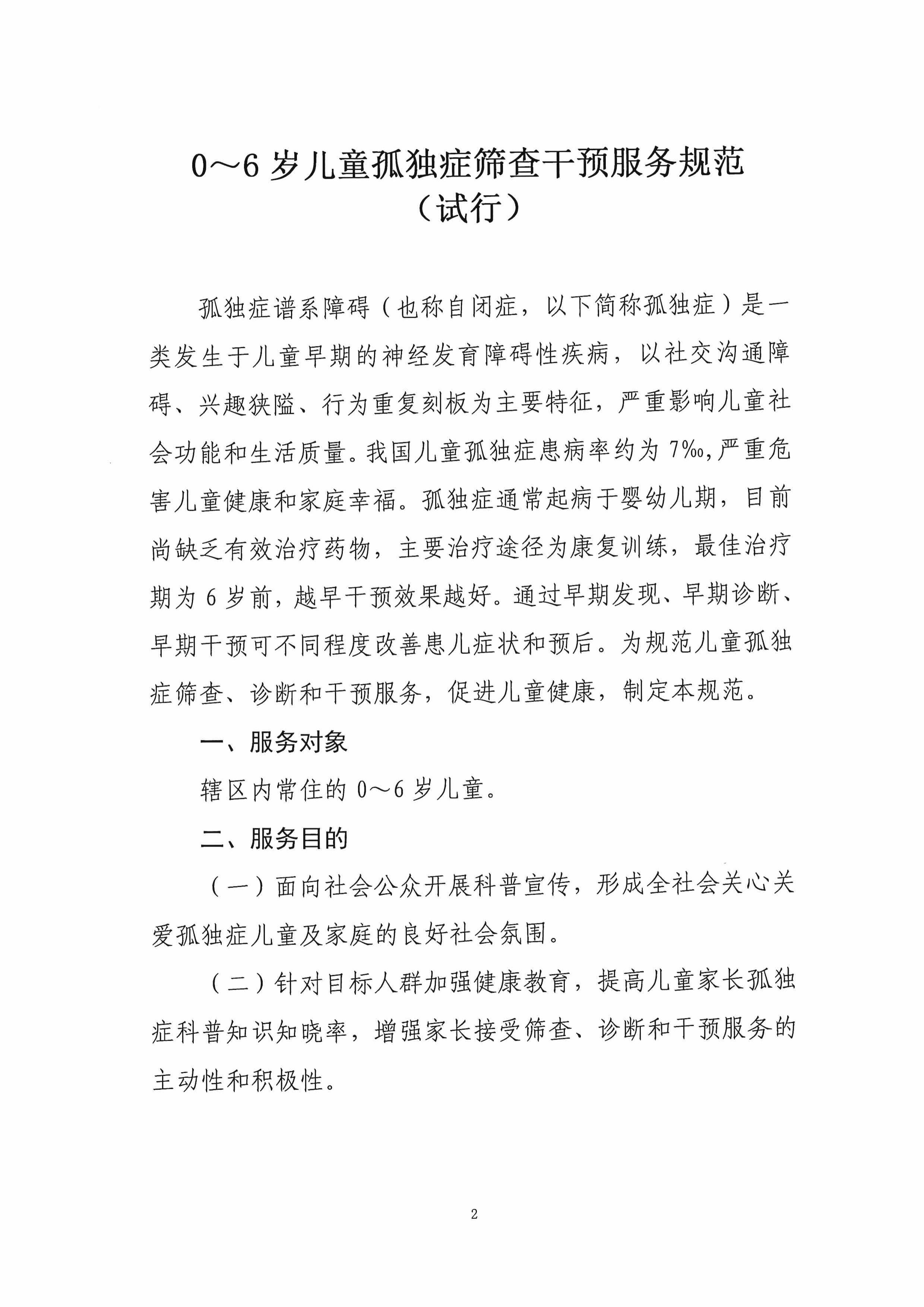 国家卫健委办公厅关于印发0-6岁儿童孤独症筛查干预服务规范(试行)的通知