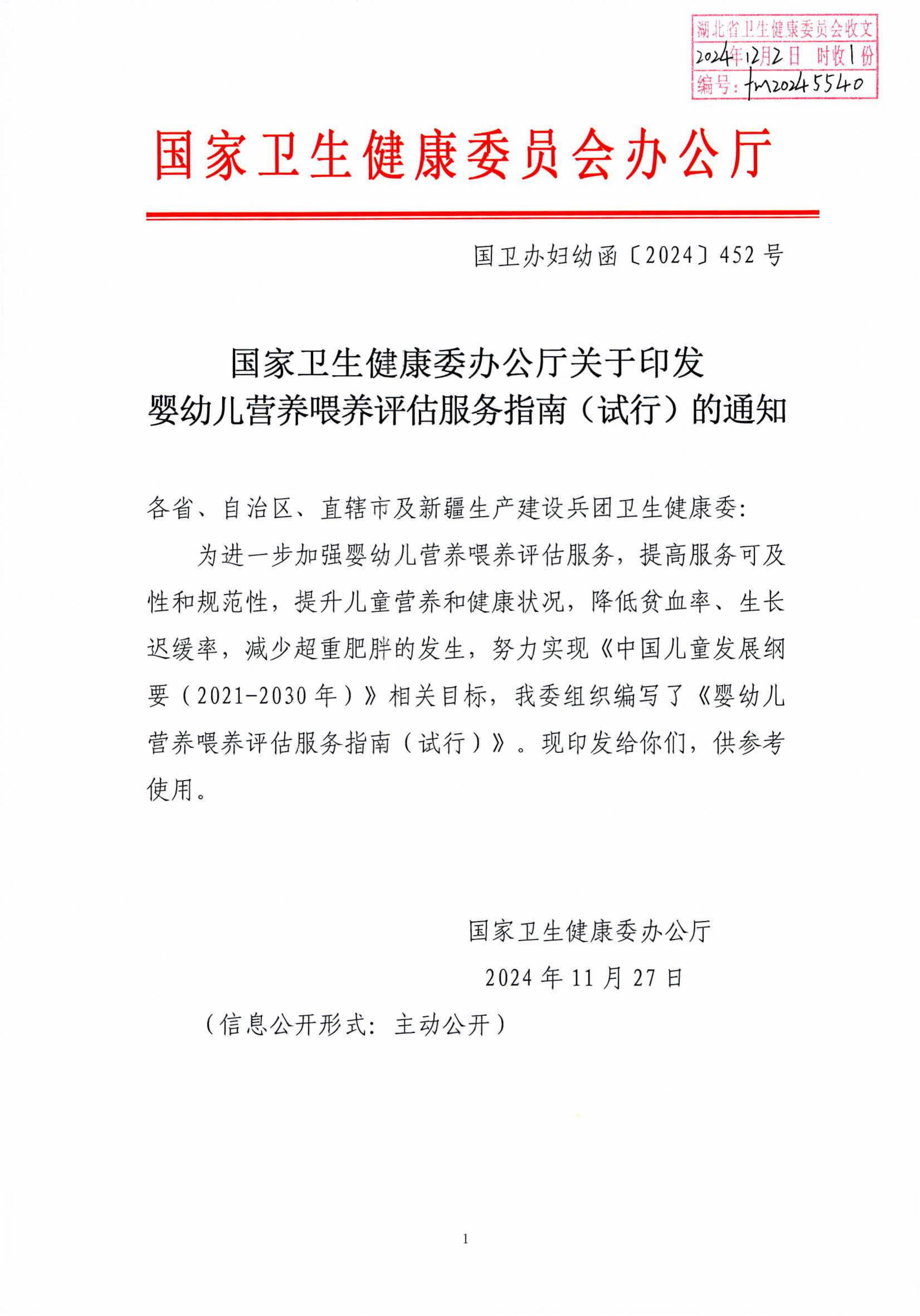 国家卫生健康委办公厅关于印发婴幼儿营养喂养评估服务指南(试行)的通知